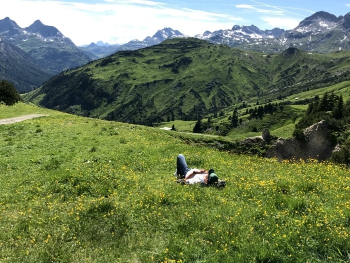 As we hiked above Oberlech, our path took us through a tangle of wildflowers and grasses, yellow daisies and the white lacy heads of cow parsley. If you can, I urge you to visit in the spring and early summer, to go hiking in Vorarlberg and see the flowers at their most beautiful, before they are mown and made into hay for winter fodder.