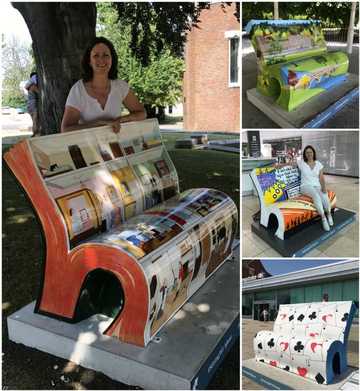 To mark the Basingstoke connection and the 200th anniversary of Jane Austen’s death in 1817, we followed a trail of painted book-benches at different locations in and around Basingstoke.