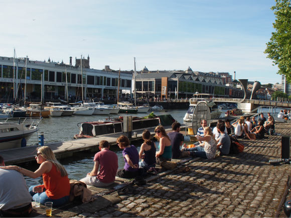 On a sunny afternoon in Bristol the harbour is buzzing. Locals with an after-work pint in their hand spill out onto cafe terraces to soak up the sunshine.