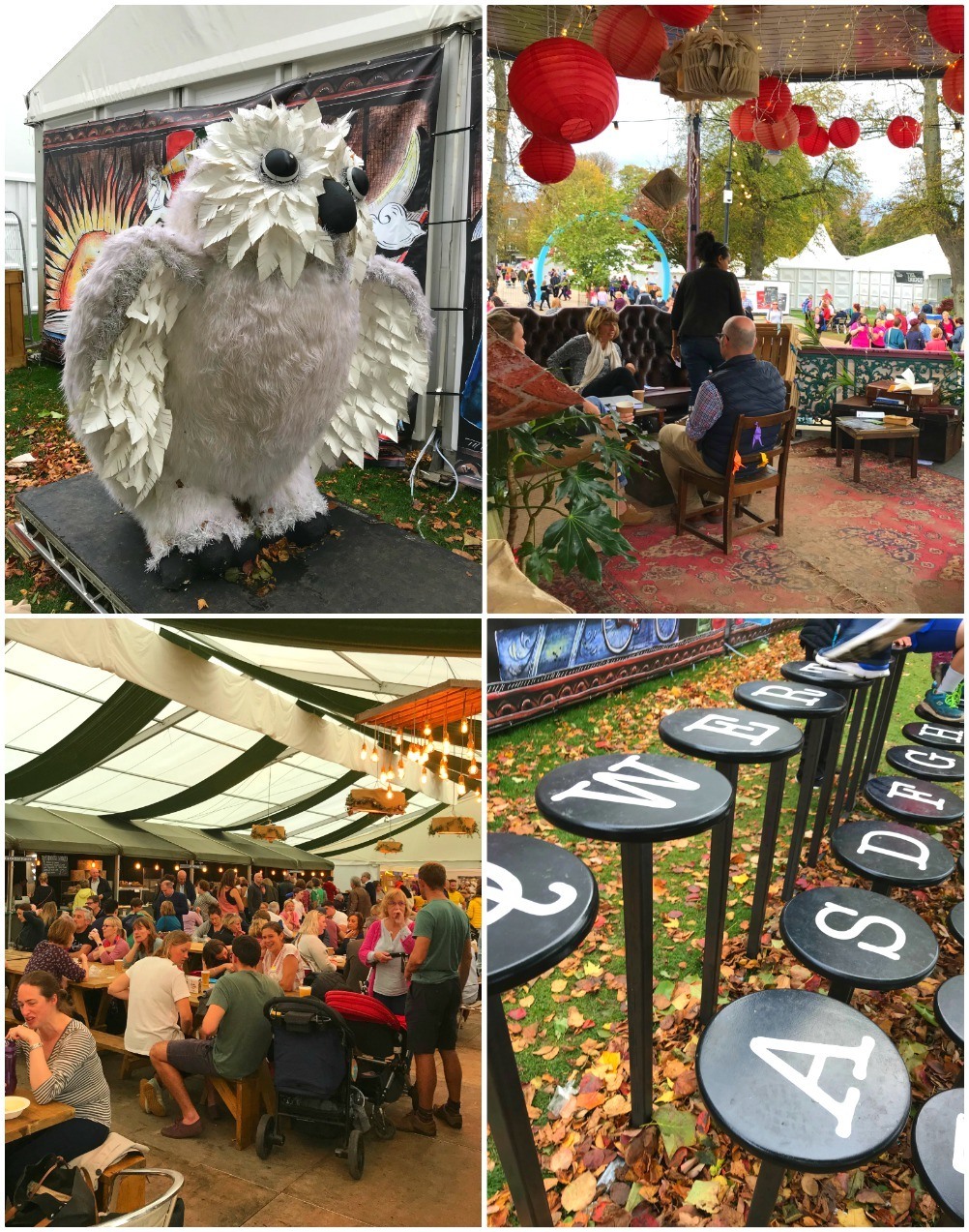 The park’s bandstand had been transformed into The Bookstand with Chinese lanterns and books to swap. A large marquee housed the Feast Cafe, serving cakes, coffee and lunches from local restaurants and food specialists. Of course a big draw of the Cheltenham Literature Festival is the talks from TV presenters like David Attenborough and Great British Bake Off winner Nadiya Hussain, comedians like Ruby Wax and authors such as Jacqueline Wilson, Philip Pullman and Anthony Horowitz.