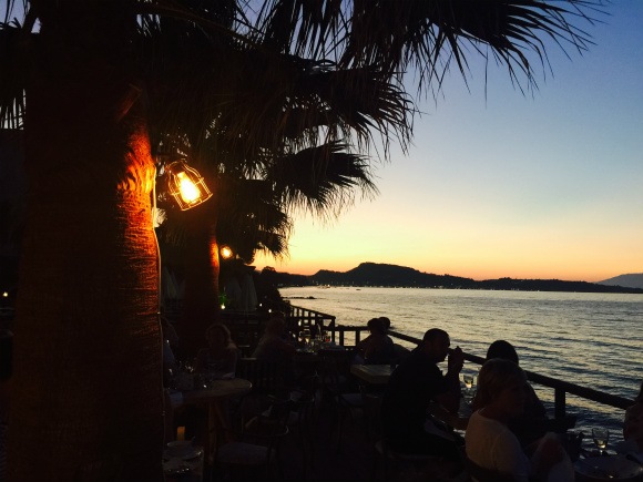As you order a cocktail or glass of wine the sky turns to pink as the rosy ball of the sun sets over Zante town. Candles flicker on the table and lanterns are lit around the restaurant. The lights of the town match their twinkle across the bay.