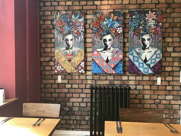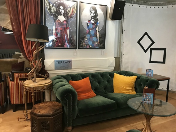 The Berkeley Square Hotel professes to be Bristol’s first Art Hotel and when I was there, an exhibition of Copyright, one of Bristol’s best known graphic artists was covering the walls – colourful stylised female portraits in rich colours.