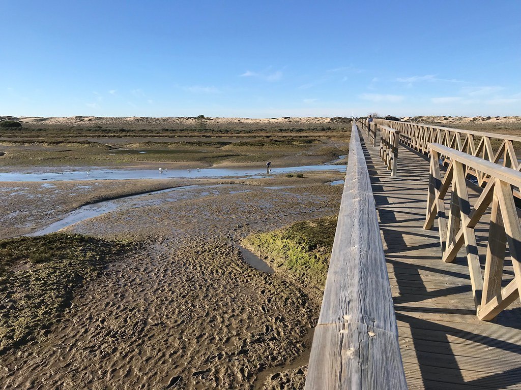 A short stroll from Quinta do Lago Country Club, the path skirted the edge of the salt marsh. It then led to the wooden bridge across this tidal basin to Quinta do Lago beach.
