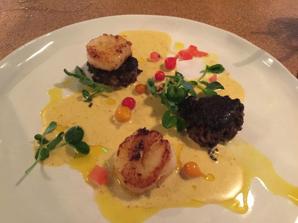 By the time my starter of roast scallops with black pudding and curry cream arrived I was definitely converted. This could possibly be the prettiest dish I’d seen in a long while. The richness of the scallops and sauce being offset by the sweet sharpness of the red currents scattered across the plate.