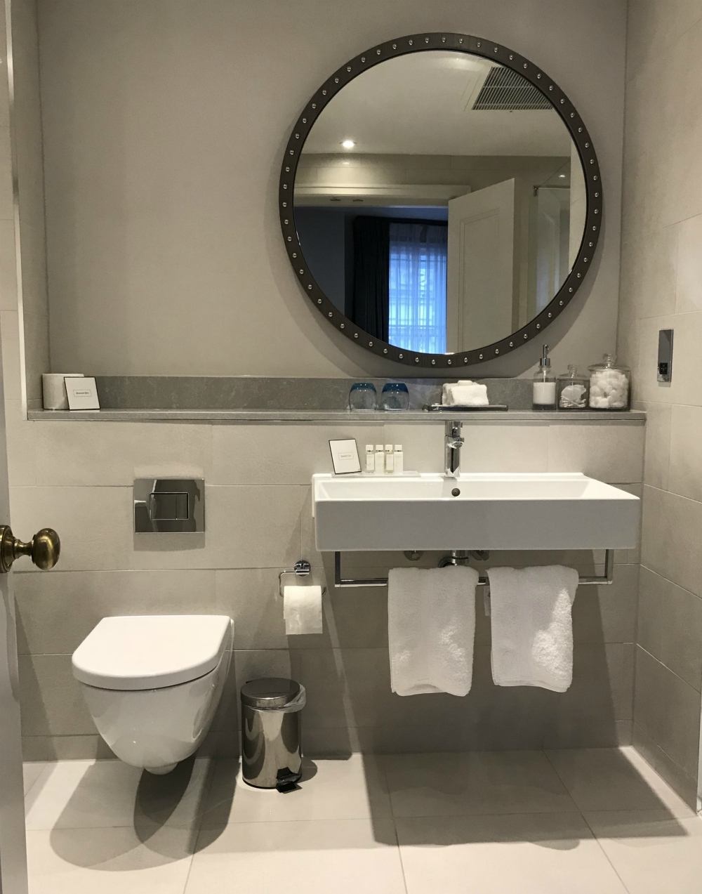 Our bathroom was awash with pale marble and glamorous touches, a the gently sparkling vanity surface and bronze studded mirror. To one side was a spacious walk in shower with rain forest head and easy-to-work-out taps (you’d be surprised at how often we puzzle over getting the right temperature). On the other was an enormous bath and heated towel rail, to luxuriate and test out all the White Company toiletries.