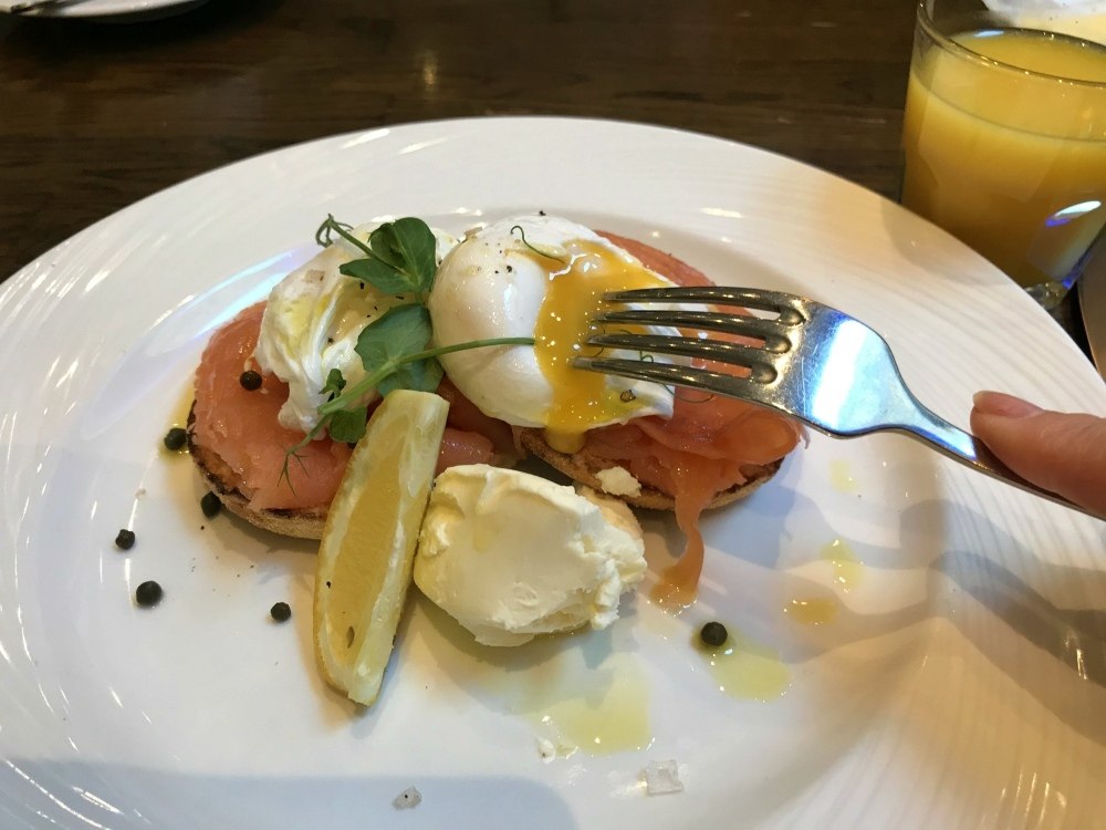 Of course I had to order my favourite poached egg with smoked salmon on a muffin which was delicious, the eggs perfectly cooked with a runny yolk just as I like it (I’m becoming quite a connoisseur of the Eggs Benedict and Eggs Royale). As an alternative cooked dish you can have grilled kippers (so English) boiled eggs with soldiers (so Mary Poppins) or a traditional cooked English breakfast or vegetarian cooked breakfast.