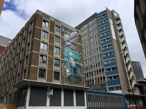 Nelson Street is now under development with a large building site. Some of the smaller pieces from the festival have been lost, but it’s still well worth visiting for the larger murals that remain.