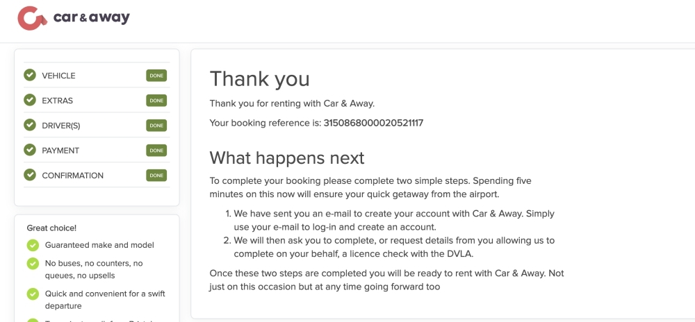 That’s it – the booking was complete! It was all pretty painless and I’d estimate would take you 5-10 mins to complete these steps online as long as you have your licence details to hand.