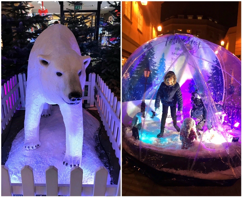 In the centre of the shops at Brunel Square, they had created a Festive Forest. Cosy little cabins were surrounded by woodland animals. Lights shot like sparkling snowflakes from the tree.