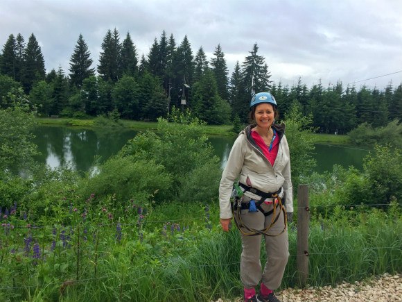 Normally my happy place would be an Alpine hiking trail, preferably with blue skies and brilliant sunshine. Perhaps even a mountain hut to order a cold beer and admire the view! I may have walked the Tour de Mont Blanc and tried climbing a Via Ferrata, but the high wire course was definitely stretching my climbing abilities.