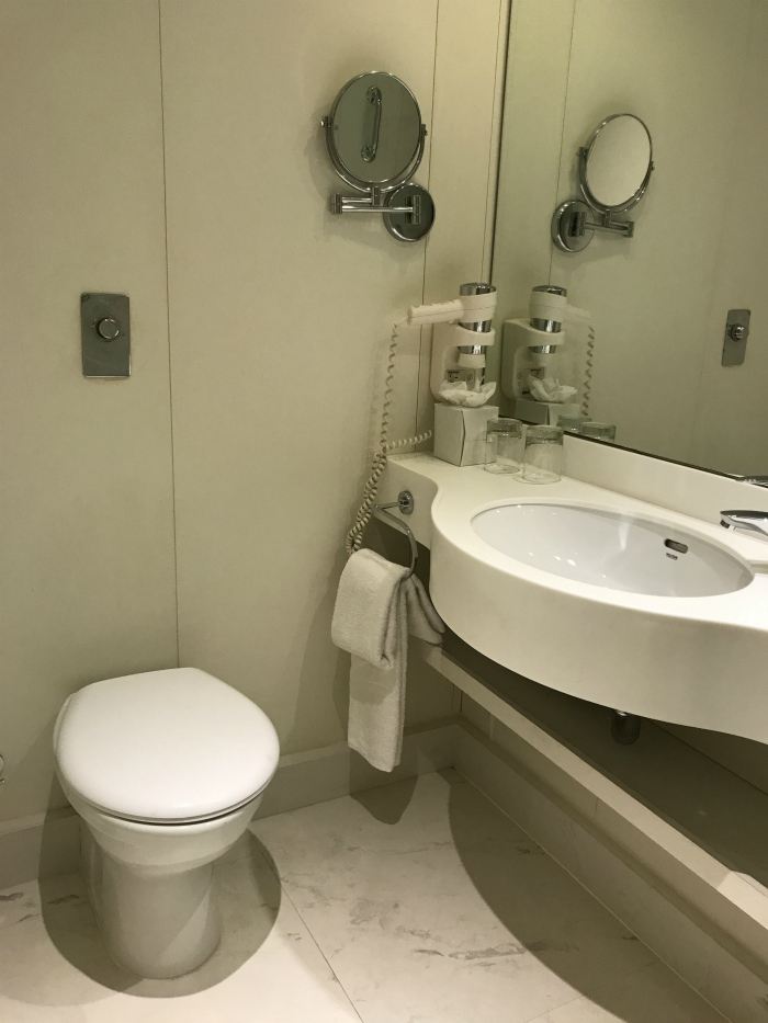 Our bathroom had marble effect tiles and flooring with a large sink area and walk in shower. There were plenty of delicious Molton Brown toiletries to spoil us too. Storage was plentiful in the double wardrobe and drawers, with space for our cases under the beds and a fridge to keep drinks cool.