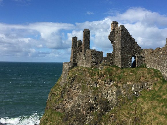 Dunluce Castle looks as if it might just topple off the edge of the cliff and into the sea to the pounding waves below. But wait… apparently a bit of the manor house did fall off the the cliff in the 18th century and you can now see the hole with iron bars across it.