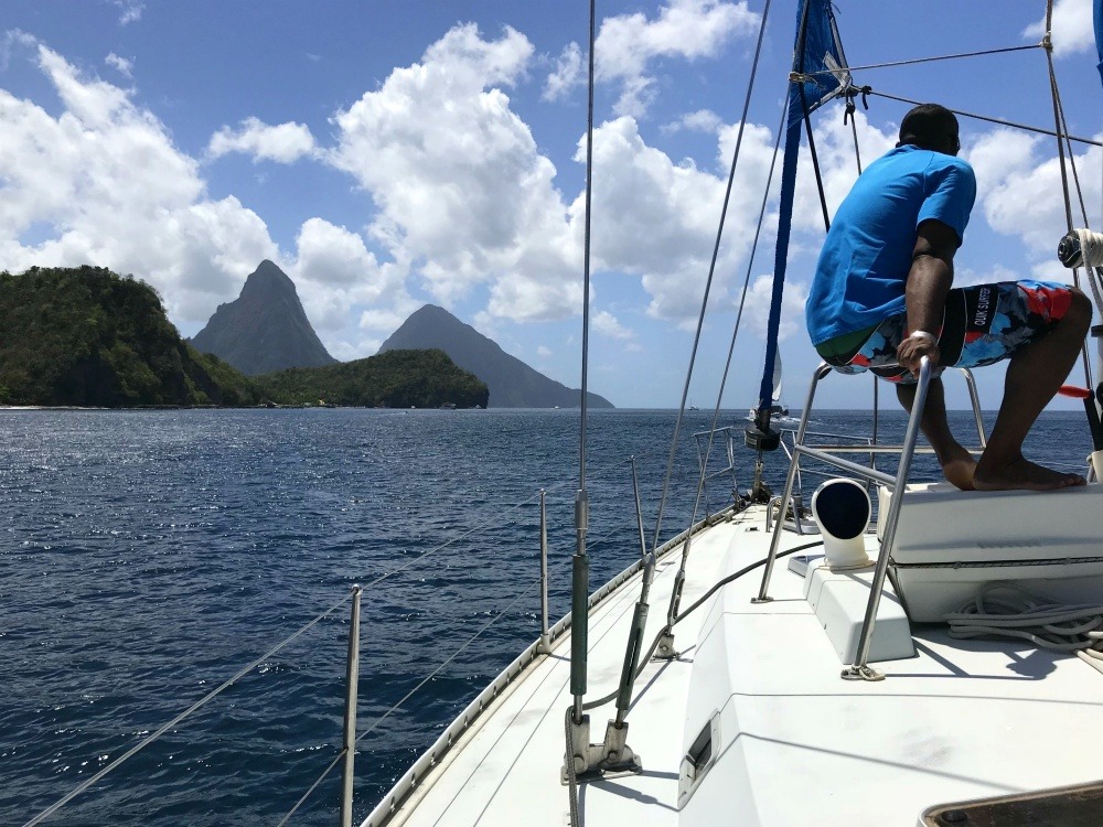 If you’re a novice sailor like me – no problem! The watersports instructor Wesley was only too happy to take me out for a sail. I clung to the edge of the catamaran, as we skimmed at speed along the water heading down the coast until we were half way to Castries.