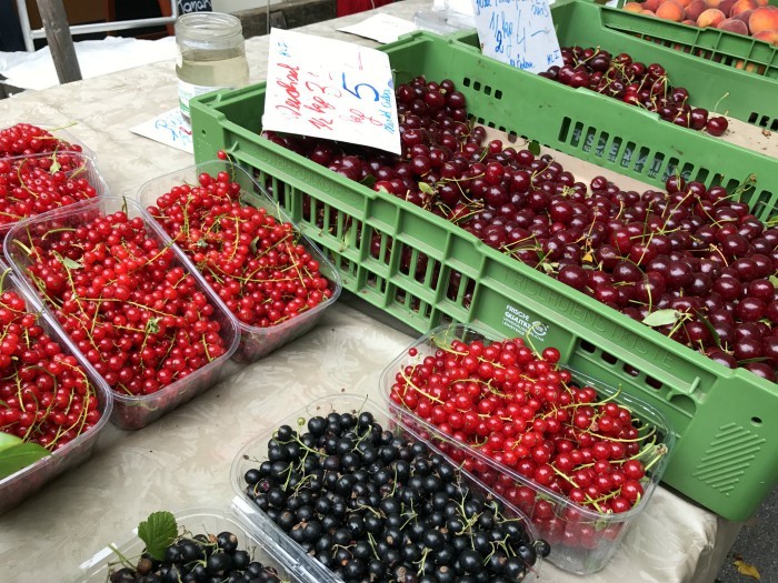Oh, those glistening red currents and glossy cherries were so tempting in the farmer’s markets of Graz! Perfect to add to your basket of crusty country bread and local cheeses to have a picnic.
