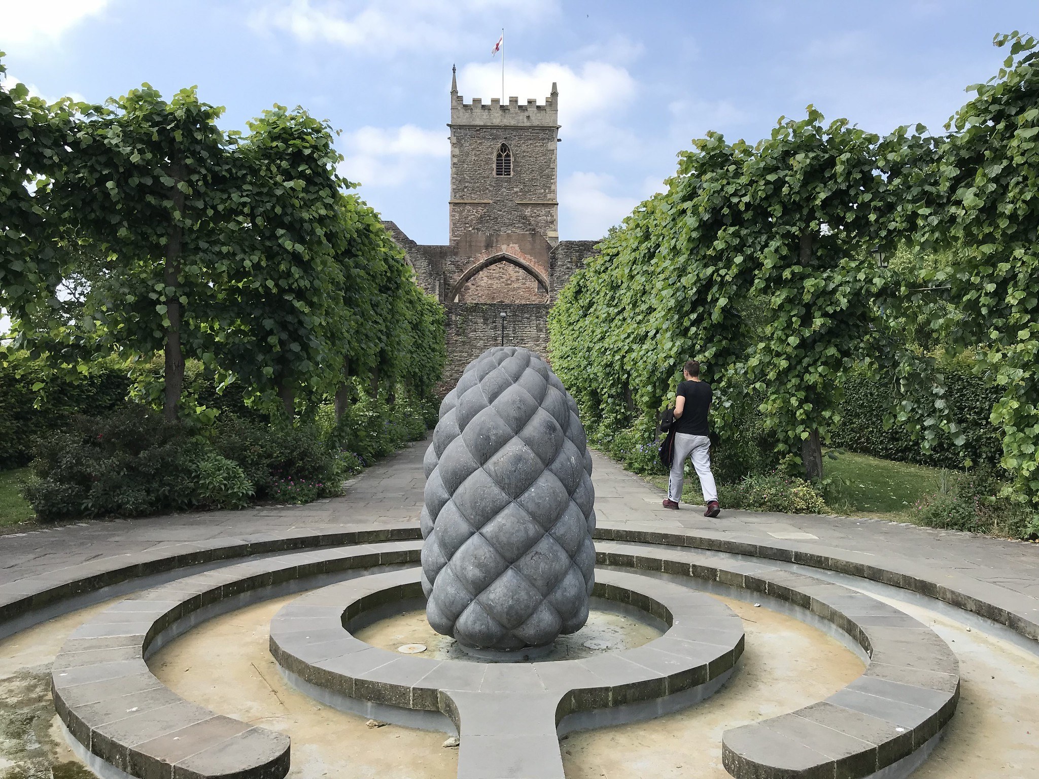 In the heart of Medieval Bristol is Castle Park – a favourite place for local office worker to have lunch on a sunny day with a view of the canal. The focus is the shell of St Peter’s church, destroyed by wartime bombs and never reconstructed, so only the tower and open walls remain.