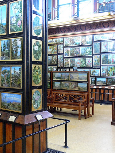 Now, following a major restoration, the leaking roof and structure has been repaired, the floors relaid to the original tiles and the pictures restored and rehung, to ensure they are not at risk from damp and humidity. Since I first visited, a small exhibition room has been opened at one side of the gallery, with audiovisual displays about Marianne’s life and travels and a passageway opened to lead to the adjoining modern Shirley Sherwood Gallery, with more botanical paintings.