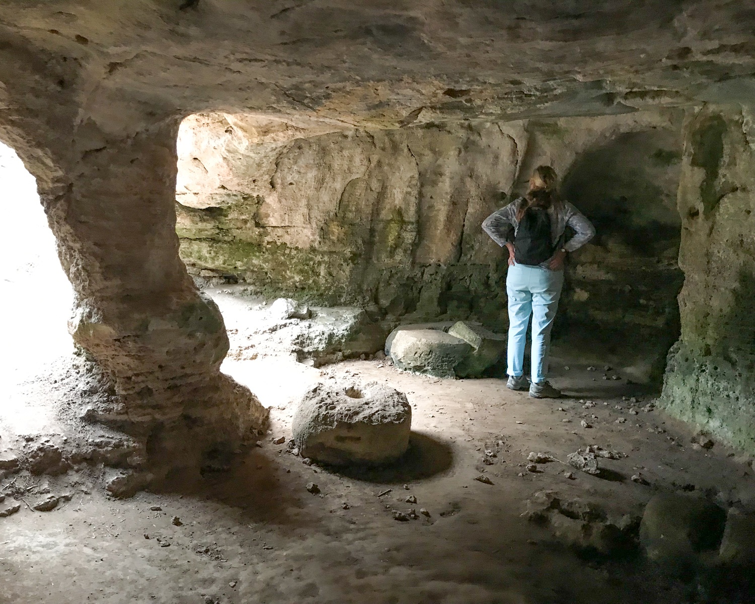 While the entrance to the Naveta des Tudons was sealed, on another day Zoe Dawes and I were able to visit another of the Menorca ancient sites. We entered the similar tomb of Naveta de Rafal Rubí where there are two Navetas built close together.