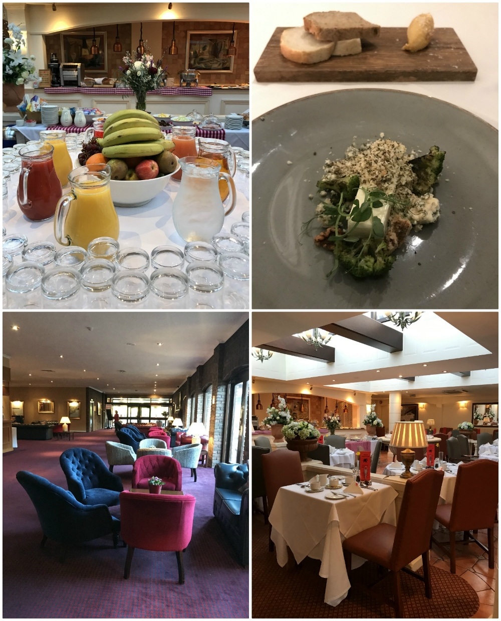 Dinner and breakfast were in the Ravello’s restaurant, which is light and attractive with floral displays and crisp white tablecloths. The restaurant has been awarded 2 AA rosettes and in the evening it features and excellent 3 course carvery menu for £26 with a choice of starters and deserts, while the main course was a carvery choice of beef, turkey or pork and a wide selection of roasties and other veg.