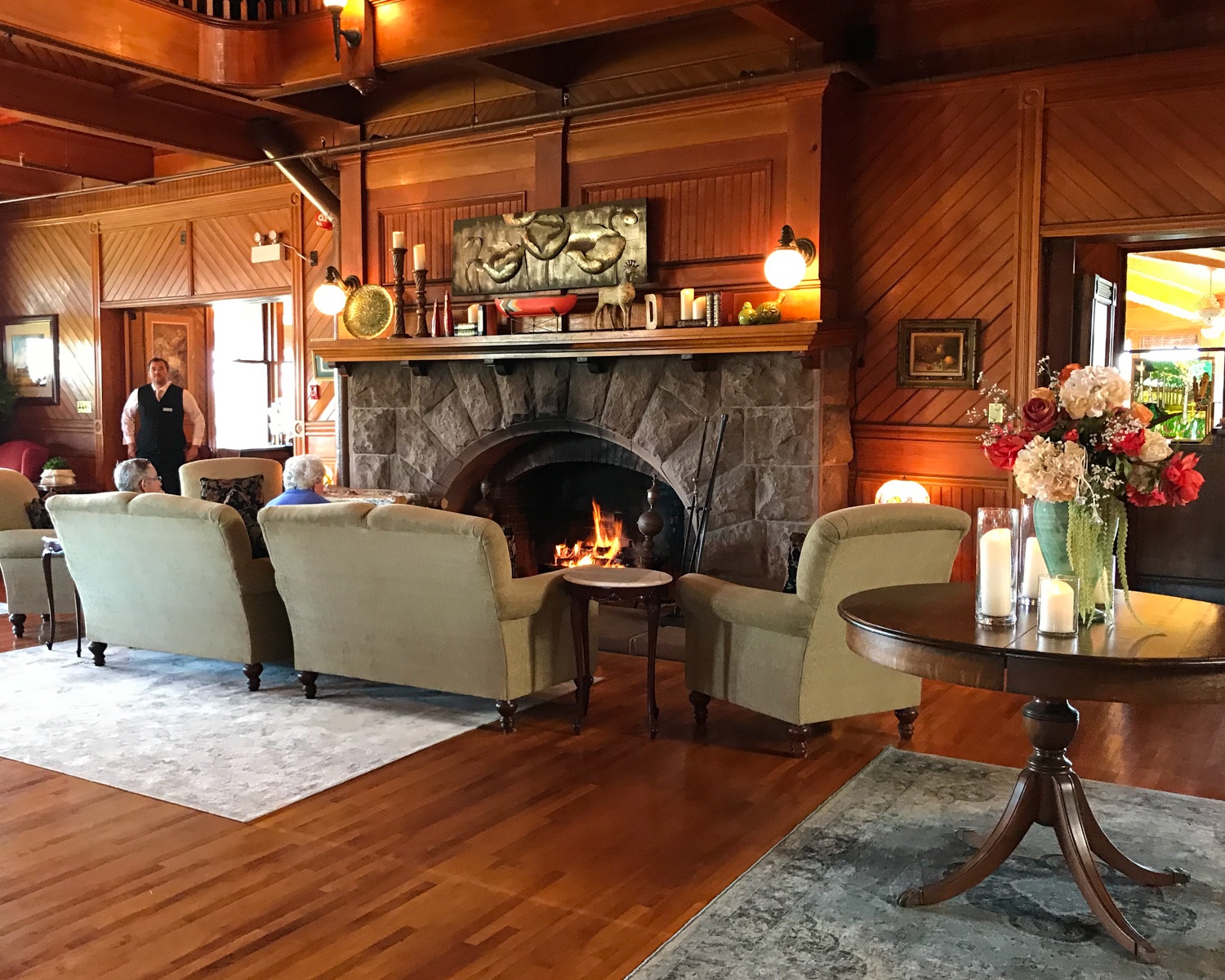 Although we didn’t have a chance to eat here, this would be a fabulous place for dinner or perhaps afternoon tea. Or, perhaps just lounge by the stone fireplace in the lobby or in the spacious and elegant library.