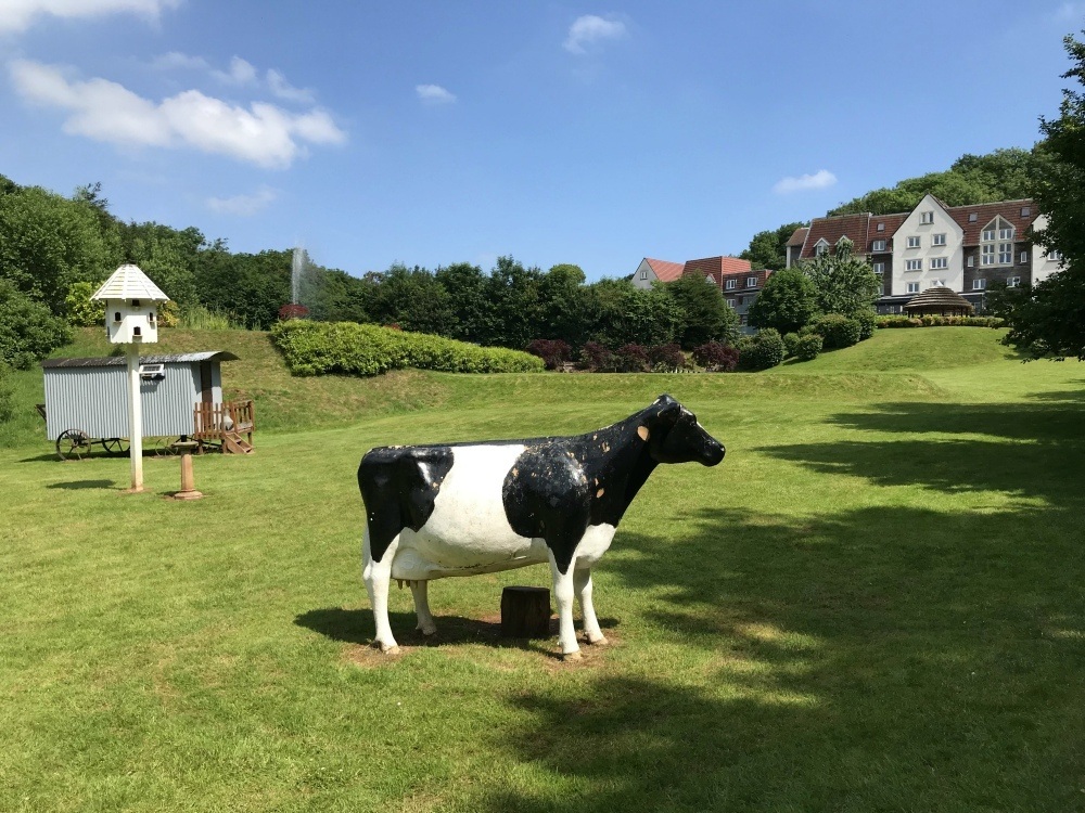 I imagine that this grassy open space by the lake would come into its own when weddings are held here, as it was the ideal spot for a marquee. Further down the slope I stopped to say hello to a life size metal cow, standing near a dovecote and tin shepherd’s hut which had been made into a children’s playroom. The gardens were beautifully kept, with doves and pheasants wandering around the lawns or kept in their enclosures under the trees.