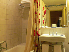 The bathroom was traditional in style incorporating more of the Portuguese painted tiles as well plenty of fluffy monogrammed towels. It was a lovely room (No 54 if you must know) from which to soak up the charm of old Lisbon, watch the elevator funicular slowly chug up the steep hill and be woken by the church bells from the dome behind the hotel.