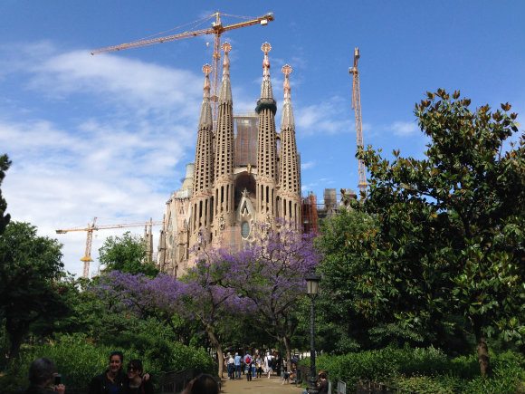 Next on our wish list was La Sagrada Familia. We were hopeful that as it was now 4.30pm the crowds would have reduced. The sun came out as the ornate spires of the Antoni Gaudi’s unfinished basilica came into view.