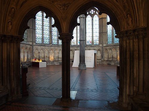 In the chapter house of Salisbury cathedral you can see the best preserved of the four original copies of Magna Carta, sealed in 1215 by King John in an agreement to preserve the constitutional rights of his nobility. The ‘Great Charter’ guarantees certain rights, including the right to a free trial and copies were sent around the kingdom after King John made peace with his barons at Runnymede, to ensure he didn’t change his mind (which of course he did).