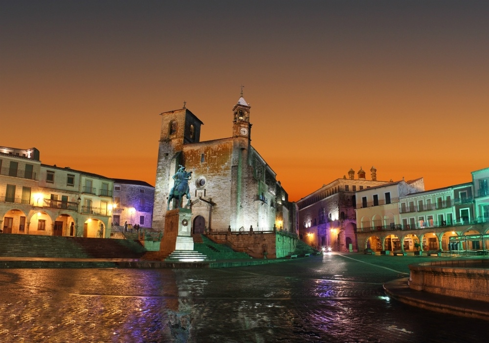 As with most Spanish towns, the Plaza Mayor or main square of Trujillo is a place to gather, especially on summer evenings when floodlights add to the atmosphere.