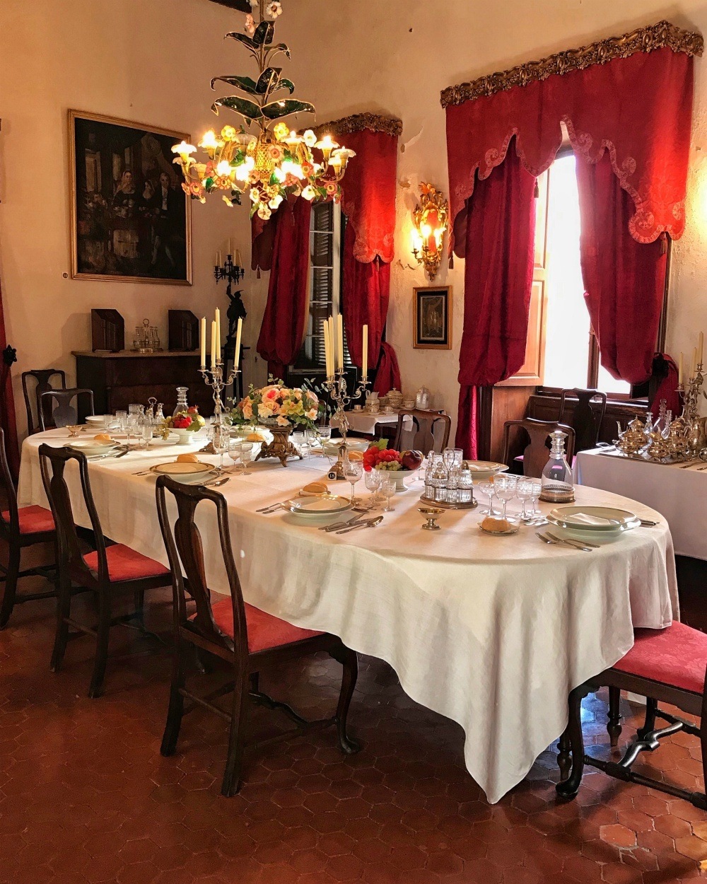 One is of the owner Don Carlos de Salort y Olives, who is dressed in costume for the feast of Sant Joan – St John the Baptist, the patron saint of Ciutadella. The reception rooms overlooking the square are elegantly furnished for the noble family who lived here. A spacious kitchen uses the colourful local tiles and is laid out as if for a meal for the servants.