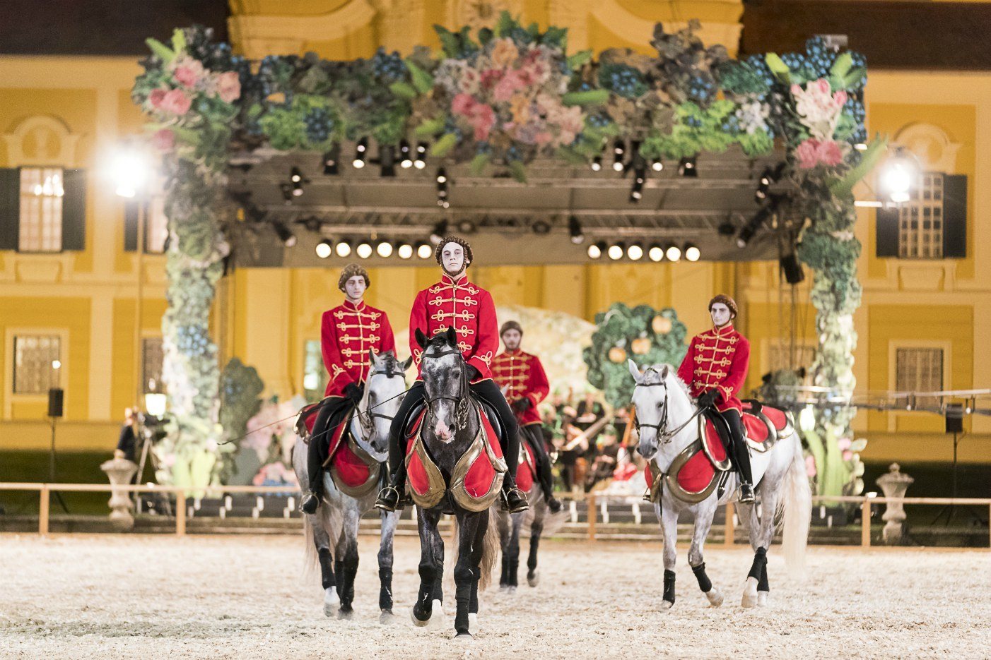 The baroque opera telling the classical tale of Heracles and the golden apple was interwoven with the horse ballet. It represented the conflicting armies and the daughters of the king with their long flowing hair and flower garlands.