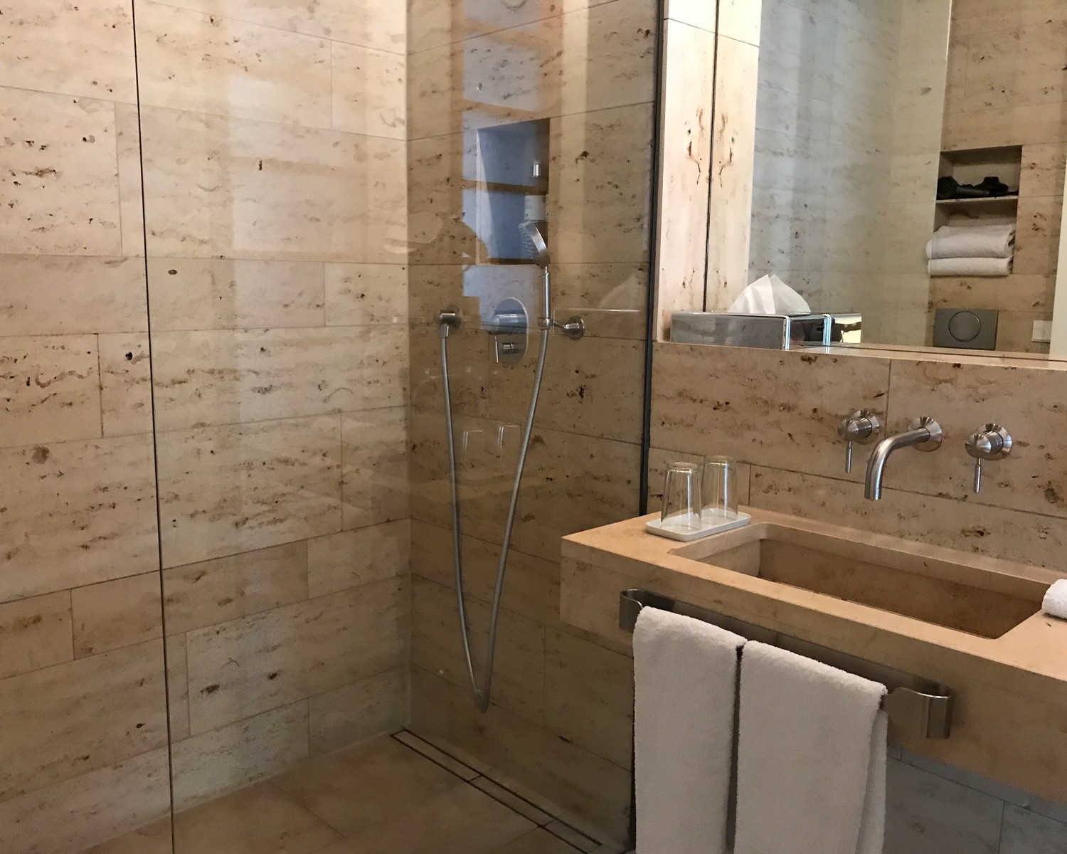 Our Courtyard Superior room was compact with a marble lined walk in shower, pull out wardrobe and a curious travelling case cupboard that opened to reveal the TV, mini bar and safe. Every time we walked out of the lift or the bedroom we were greeted by a waft of heavenly fragrance in the corridor.