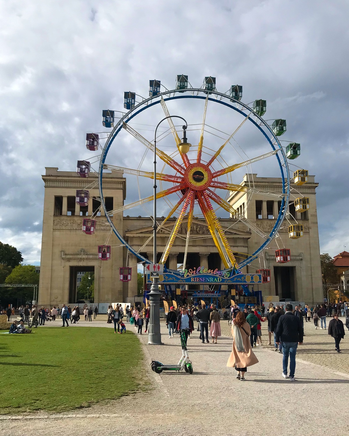 Königsplatz also played its part in the history of the Third Reich and Hitler held mass rallies there. These days it’s often used for festivals. While we were there, the square was being used for a funfair, as part of the Summer in the city programme for Munich.