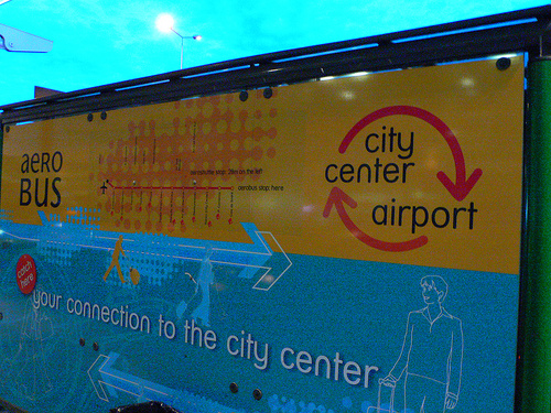 Personally, if you’re staying reasonably centrally, I wouldn’t bother and just take the aerobus service from right outside the Arrivals terminal. You walk through Exit 3 and see the bus stop with the Aerobus sign. The buses go every 20 minutes from here into the city and there’s a map on the bus stop showing the route and the stops.