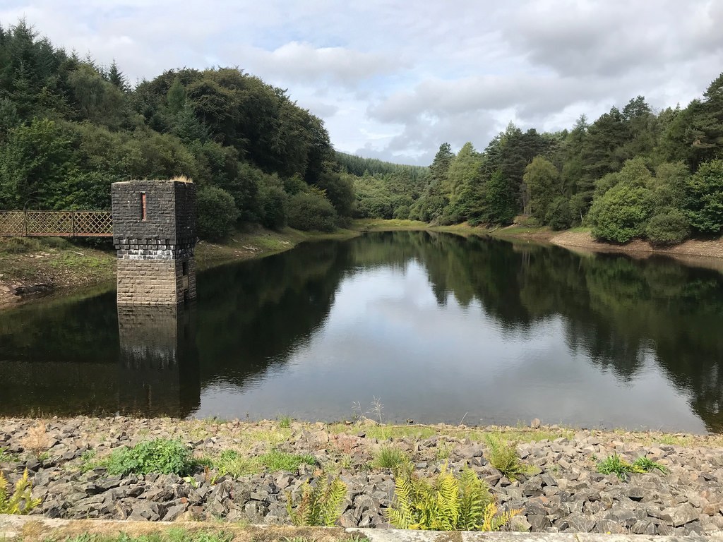 Just a little beyond the waterfall we reached the Cwm Clydach Reservoir, the still water creating a mirror to reflect the forest trees growing right down to the edge. The reservoir was built in the 1890s to keep up with the growing population at nearby Mountain Ash and Ynsybwl, and although we were a little too early to see it, the larch and beech that overhang the water’s edge provide spectacular colour in autumn.