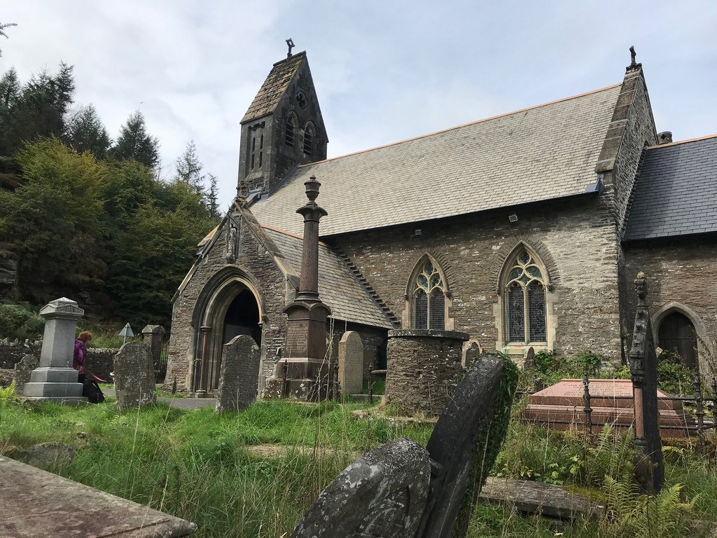 The last stop of the walk was St Gwynno’s church, which was possibly founded by St Gwynno, since there’s been a site of Christian worship here since the 6th century. The interior of the church, which was opened specially for us, is simple bare stone with a 7th Century Celtic cross carved into the south wall. The church is surrounded by a graveyard with the grass overtaking the headstones and tombs, almost burying the graves of several significant local figures.