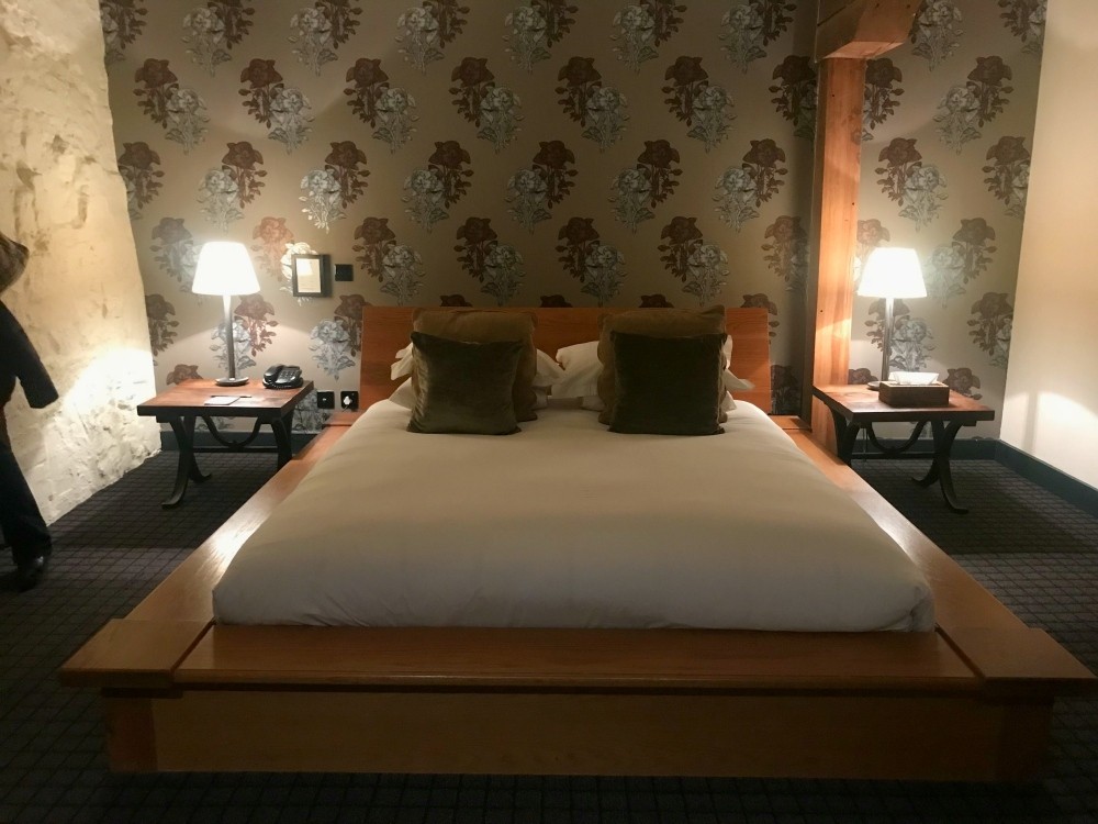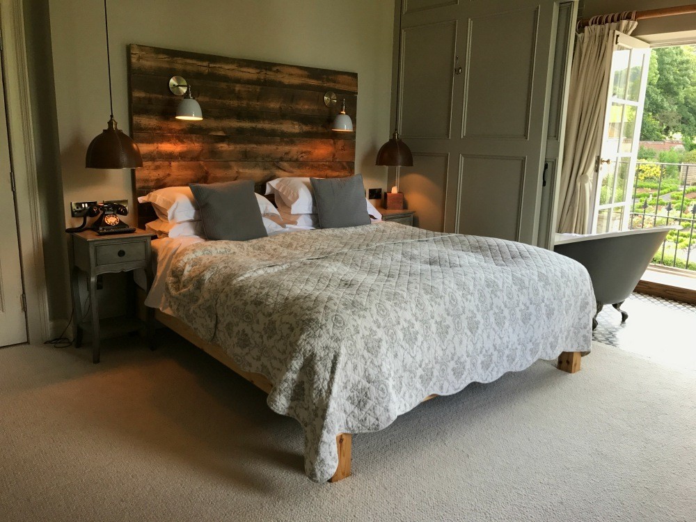 The hotel style is polished wood and wine references mixing old stone and Georgian panelling. Spacious rooms often have both roll top baths and walk in showers.