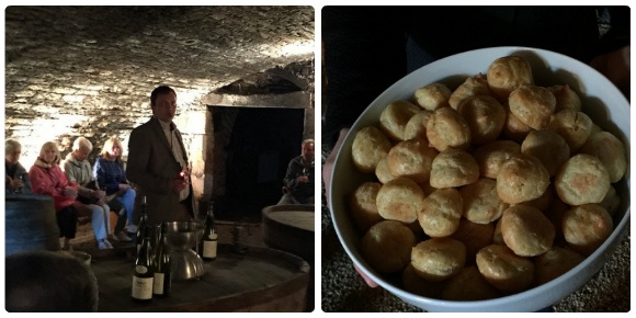 With the wine we were served some delicious cheese puffs called gougères. We tried the Premier cru 1er Cru Clos de la Bressande Monopol. The Clos being a low wall surrounding the vineyard which helps the grapes ripen by protecting them from the wind.