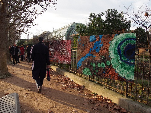 Down the fence to one side is an art exhibition with some oversized close-up photography of crystals and rocks and we can see in the next part of the garden the Menagerie. Guy is very taken with the Hotel des Abeilles – a Bee Hotel made of wood where the bumble bees and other insects can hibernate in winter, as Guy is in charge of the bees at his work. I’d like to go in the glass-houses which remind me of Kew Gardens but there’s a charge, a queue and we don’t really have enough time anyway.