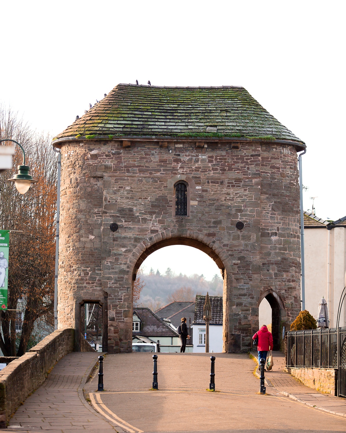 As an alternative you could skirt around the grassy banks below the castle, the stone walls rising grey above you on the path that takes you to the top of the town. Then walk back through the 16th century town gate. This was the place in the medieval city walls where people might pay a toll as they came to market or trade in Chepstow.