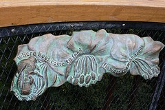 At stages around the walkway we came across sculptural metal plaques that had motifs about trees and poetic phrases such as where bees come to feed, flowers can make seeds and powered by sunlight, trees make their own food from water and air.